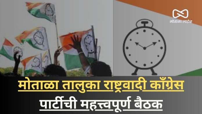 (मोताळा लाईव्ह ) मोताळा तालुका राष्ट्रवादी काँग्रेस पार्टीच्या सर्व पदाधिकारी- कार्यकर्ते यांची महत्त्वपूर्ण बैठक.असून राज्याचे मदत व पुनर्वसन मंत्री तथा बुलढाणा जिल्ह्याचे पालकमंत्री मा.ना. मकरंद जाधव (पाटील) साहेब यांचा व राष्ट्रवादी काँग्रेस पार्टीचे सिंदखेड राजा मतदार संघाचे नवनियुक्त आमदार मनोज भाऊ कायंदे यांचा सत्कार समारंभ संदर्भात तातळीचे बैठक स्वामी समर्थ मंगल कार्यालय मोताळा येथे उद्या वार शुक्रवार दिनांक 24-01-2025 रोजी स्वामी समर्थ मंगल कार्यालय मोताळा आयोजित केली आहे रामेश्वर पाटील अध्यक्ष राष्ट्रवादी काँग्रेस पार्टी, मोताळा यांनी अशी माहिती दिली आहे