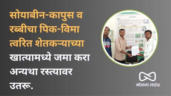 कुठंतरी उभ्या जगाचा पोशिंदा म्हणून शेती मातीत राबणाऱ्या शेतकऱ्यांच्या भावनेचा आदर ठेवुन पिक विमा कंपनीने त्वरित सोयाबीन-कापूस व रब्बीचा पिक विमा शेतकऱ्यांच्या खात्यामध्ये जमा करावा ही मागणी घेऊन युवा आंदोलक अक्षय पाटील यांनी (Aic) पिक-विमा कंपनीचे जिल्हा प्रतिनिधी यांच्याशी दिनांक १९/१२/२०२४ चर्चा करून त्यांना निवेदन दिले.