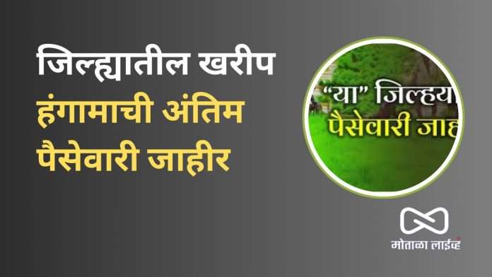 ( मोताळा लाईव्ह ) दि. 1: सन 2024-25 च्या खरीप हंगामातील प्रमुख पिकांची जिल्ह्याची सरासरी अंतिम पैसेवारी 51 पैसे इतकी जाहीर करण्यात आली आहे. जिल्ह्यात एकूण 1 हजार 420 गावे आहेत. यातील 1 हजार 58 गावांची खरीप हंगामाची अंतिम पैसेवारी 50 पैशांपेक्षा कमी आहे. तर 362 गावांची पैसेवारी ही 50 पैशांपेक्षा जास्त आहे.