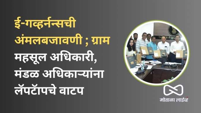 (मोताळा लाईव्ह ): केंद्र आणि राज्य शासनाने प्रशासकीय कामकाजात गती आणण्यासाठी ई-गव्हर्नन्स उपक्रमाची अंमलबजावणी करण्याचे निर्देश देण्यात आले आहेत. या उपक्रमांतर्गत जिल्ह्यामधील एकूण १३ तालुक्यातील कार्यरत ५०४ महसूल अधिकारी व ८९ मंडळ अधिकारी असे एकूण ५९३ लॅपटॉप व ५९३ प्रिंटरचे वाटप जिल्हाधिकारी डॉ.किरण पाटील यांच्या हस्ते करण्यात आले.