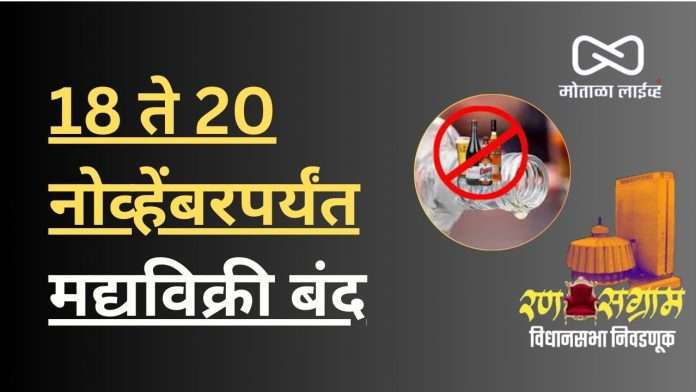 (मोताळा लाईव्ह )विधानसभा निवडणुकीच्या अनुषंगाने जिल्ह्यात “कोरडे दिवस” पाळण्याबाबतचे आदेश निर्गमित करण्यात आलेले आहे. त्यानुसार दि. 18 नोव्हेंबरचे सायंकाळी 5 वाजेपासुन ते 20 नोव्हेंबरपर्यंत जिल्ह्यातील सर्व मद्यविक्री अनुज्ञप्ती बंद राहतील. तसेच दि. 23 नोव्हेंबर रोजी मतमोजणीच्या दिवशी कोरडा दिवस जाहीर करण्यात आलेला आहे. मध्यप्रदेश राज्याच्या सिमावर्ती भागात सुद्धा कोरडा दिवस जाहीर करण्याबाबत बुरहानपुरचे(मध्यप्रदेश) जिल्हाधिकारी यांना पत्र देण्यात आले आहे.