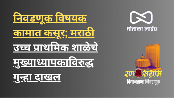 (मोताळा लाईव्ह ) -मतदान साहित्य वाटपाच्या वेळी अनुपस्थित राहून कामात कसून केल्या प्रकरणी नांद्राकोळी येथील मराठी उच्च प्राथमिक शाळेचे मुख्याध्यापकाविरूद्ध पोलीस स्टेशन, बुलढाणा येथे गुन्हा दाखल करण्यात आला आहे. बुलढाणा मतदारसंघाचे निवडणूक निर्णय अधिकारी यांच्या शिफारसीनुसार तक्रार दाखल केली आहे..