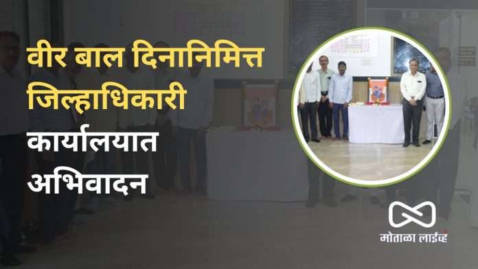 (मोताळा लाईव्ह ): ‘वीर बालदिवस’ निमित्त आज जिल्हाधिकारी कार्यालयात अभिवादन करण्यात आले. अपर जिल्हाधिकारी सदाशिव शेलार यांच्या हस्ते साहिबजादे बाबा जोरावार सिंह आणि बाबा फतेह सिंह यांच्या प्रतिमेला पुष्पहार अर्पण करून अभिवादन करण्यात आले. यावेळी जिल्हाधिकारी कार्यालयातील अधिकारी- कर्मचारी उपस्थित होते.