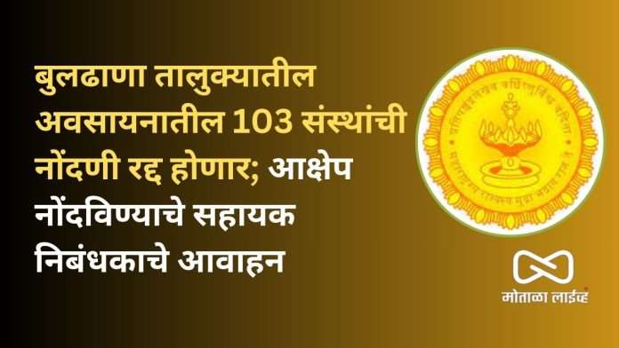 (मोताळा लाईव्ह ): बुलढाणा तालुक्यातील 103 सहकारी संस्थाची नोंदणी रद्द करण्याची कार्यवाही सहायक निबंधक सहकारी संस्थाव्दारे करण्यात येत आहे. महाराष्ट्र सहकारी संस्था अधिनियम 1961 चे नियम 89(4) नुसार अवसायनातील संस्थाशी ज्या कोण्या व्यक्ती वा संस्थेविरुद्ध काही दावे असल्यास त्यांनी जाहिर सूचना प्रसिद्ध झाल्यचे तारखेपासून दोन महिन्याचे आत नोंदवावे लागणार आहे. त्यानंतर दाव्यांची दखल घेतली जाणार नाही, असे सहकारी संस्थाचे सहायक निबंधक गजानन आमले यांनी कळविले आहे.महाराष्ट्र सहकारी संस्था अधिनियम 1960 चे कलम 102 नुसार सहकारी संस्था अंतिम अवसायनात घेण्यात अलेल्या अहेत. या संस्थावर अवसायकाची नियुक्ती यापुर्वीच करण्यात आलेली आहे. यापुढील दाखल केलेल्या दाव्याचे अनुषंगाने कोणत्याही दावा दाखल न झाल्यास त्यांनतर 103 संस्थांची नोंदणी रद्द करण्यात येईल, यांची नोंद घ्यावी.