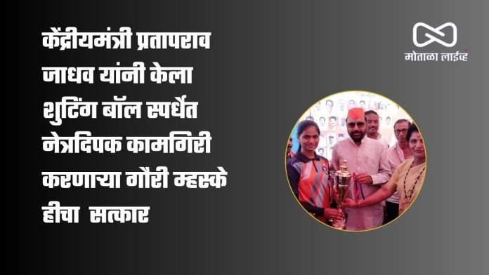 (मोताळा लाईव्ह) नेपाळ येथे झालेल्या शूटिंग बॉल स्पर्धेमध्ये नेत्रदीपक कामगिरी करत भारतीय संघाला विजय मिळवून दिल्याबद्दल गौरी म्हस्के हिच केंद्रीयमंत्री प्रतापराव जाधव यांनी अभिनंदन करत सत्कार केला आहे