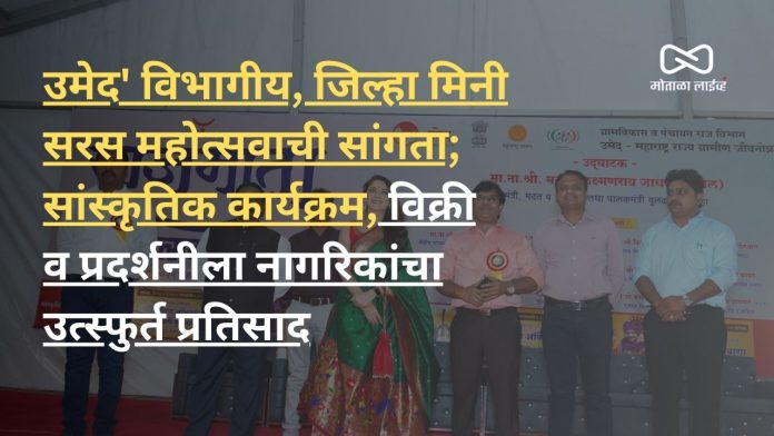 [ मोताळा लाईव्ह ] ग्रामविकास व पंचायत राज विभागाअंतर्गत उमेद महाराष्ट्र राज्य ग्रामीण जीवनोन्नती अभियान, जिल्हा ग्रामीण विकास यंत्रणा, जिल्हा परिषद बुलढाणाच्या वतीने “विभागीय, जिल्हा व मिनी सरस” चे आयोजन दि. 28 फेब्रुवारी ते 4 मार्च 2025 दरम्यन जिजामाता प्रेक्षगार क्रीडा व व्यापारी संकुल बुलढाणा येथे करण्यात आले होते. या महोत्सवामधील सांस्कृतिक कार्यक्रम, बचत गटातील उत्पादित साहित्याची विक्री व प्रदर्शनीला नागरिकांचा उत्स्फुर्त प्रतिसाद लाभला.
