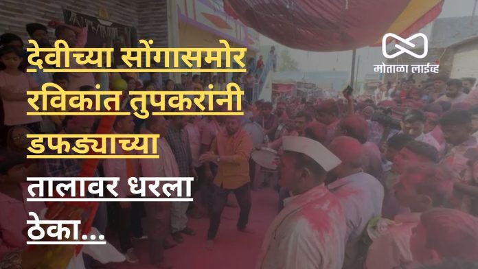 शेतकरी नेते रविकांत तुपकरांनी या पारंपारिक उत्साहात उपस्थिती लावली व गावकऱ्यांच्या आग्रहाखातर देवीच्या सोंगासमोर डफड्याच्या तालावर गुलाल उधळत जबरदस्त ठेका धरला…