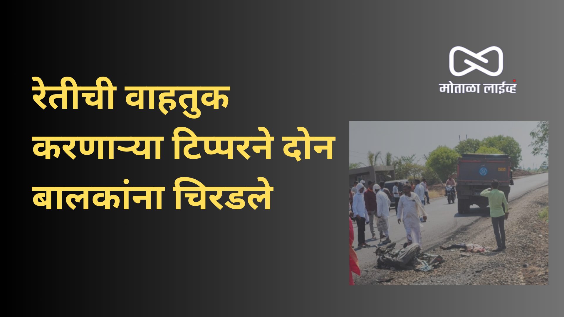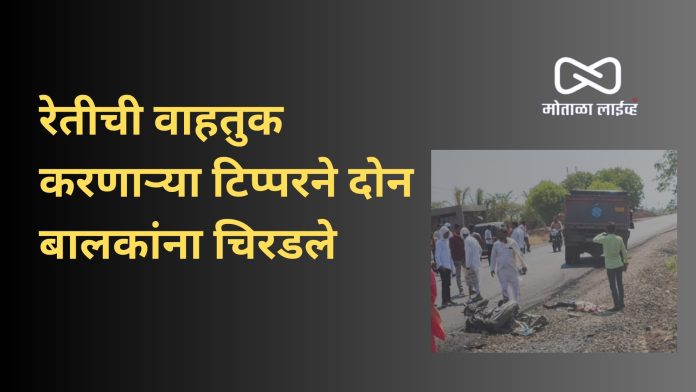 (मोताळा लाईव्ह)..जळगाव जामोद तालुक्यात अवैघ गौणखनिज वाहतूक करणाऱ्या वाहनांची मुजोरी वाढली आहे. ९ मे रोजी सकाळी ११ वाजता भरधाव वेगातील अवैध वाळू वाहतुक करणाऱ्या एका टिप्परने दुचकीला पाठीमागून धडक देवून दोन लहान बालकांना चिरडून ठार केल्याची दुर्देवी घटना समोर आली आहे. या अपघातामुळे नागरीकांमध्ये एकच संताप उमटला असून नागरीकांनी सदर टिप्परला आग लावून रोष व्यक्त केला आहे.