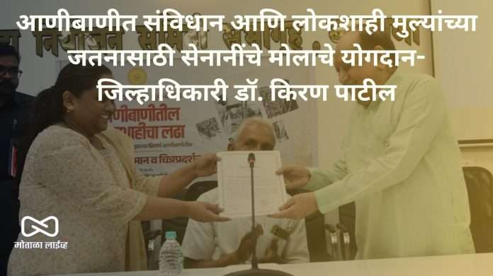 डॉ. किरण पाटील पुढे म्हणाले, “आणीबाणी लढ्यातील व्यक्तींनी भारतीय संविधान आणि लोकशाहीची मूल्ये भविष्यातही कायमस्वरूपी जतन ठेवण्याचा संदेश पुढच्या भावी पिढीपर्यंत निरंतरपणे पोहोचवावा, अशी अपेक्षा जिल्हाधिकारी डॉ. पाटील यांनी यावेळी व्यक्त केली.