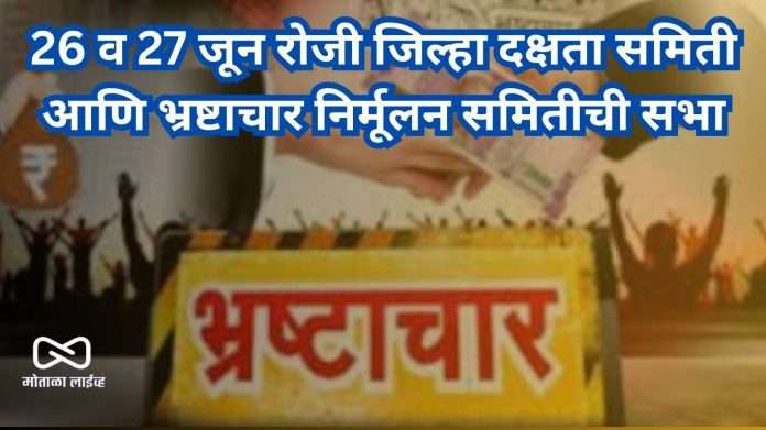 [मोताळा लाईव्ह ] भ्रष्टाचार निर्मूलन व प्रशासनातील पारदर्शकतेसाठी शासन परिपत्रकान्वये गठीत आणि जिल्हा भ्रष्टाचार निर्मूलन समितीची सभा दि.26 व दि. 27 जून 2025 रोजी आयोजित करण्यात आली आहे.