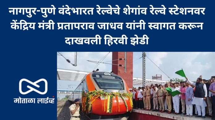 नागपुर-पुणे वंदे भारत एक्स्प्रेसला संत नगरी शेगांव मध्ये थांबा मिळवुन देण्याचे काम केंद्रीयमंत्री प्रतापराव जाधव यांनी केले आहे. आज 10 ऑगस्टला पंतप्रधान नरेंद्र मोदी यांच्या हस्ते या रेल्वे गाडीला दूरदृश्य प्रणाली द्वारे हिरवी झेंडी दाखविण्यात आली त्यानंतर ही वंदे भारत ट्रेन संतनगरी शेगांव येथे पोचली तेव्हा या वंदे भारत ट्रेनच्या स्वागतासाठी केंद्रिय मंत्री प्रतापराव जाधव स्वतःह उपस्थित होते त्यांनी त्यांनी वंदे भारत ट्रेनमधील प्रवाशांशी संवाद साधला व त्यांना प्रवासाच्या शुभेच्छा दिल्या त्यानंतर शेगाव रेल्वे स्थानकावरून वंदे भारत ट्रेनला केंद्रीय मंत्री प्रतापराव जाधव यांनी हिरवी झेंडी दाखवली यावेळी आमदार संजय कुटे रेल्वे स्थानक प्रमुख मोहन देशपांडे यांच्यासह इतर कर्मचारी उपस्थित होते गजानन महाराज की जय घोषणात या ट्रेनचे स्वागत करण्यात आले त्यानंतर ही ट्रेन भुसावळच्या दिशेने मार्गस्थ झाली
