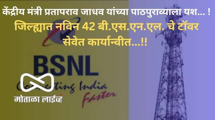 Motala live : ग्रामीण भागातही बी.एस.एन.एल. ची मोबाईल आणि इंटरनेट सेवा ग्राहकांना उत्तमरीत्या मिळावी या दृष्टिकोनातून केंद्रीय मंत्री प्रतापराव जाधव यांनी मागणी केलेले नविन 42 टॉवरची सेवा कार्यन्वीत झाली आहे. त्यामुळे नागरीकांना बीएसएनएलची नेटवर्क सेवा चांगल्या दर्जाची मिळणार आहे.