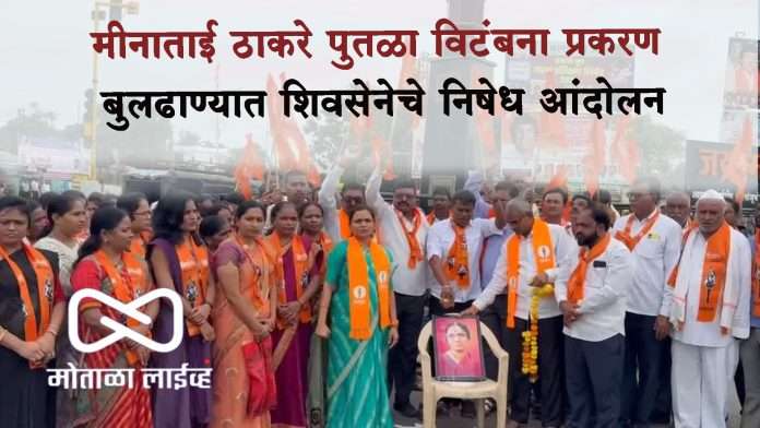 Motala live : दादर येथे दिवंगत माँसाहेब मीनाताई ठाकरे यांच्या पुतळ्याची काही अज्ञात समाजकंटकांनी विटंबना केली. या घटनेविरोधात शिवसेना (उद्धव बाळासाहेब ठाकरे) पक्षाच्या वतीने बुलढाणा शहरातील जयस्तंभ चौक येथे निषेध आंदोलन करण्यात आले. यावेळी मोठ्या संख्येने शिवसैनिक उपस्थित राहिले व घोषणाबाजी करून आपल्या भावना व्यक्त केल्या. आंदोलनकर्त्यांनी या घटनेचा तीव्र शब्दांत निषेध नोंदवला.