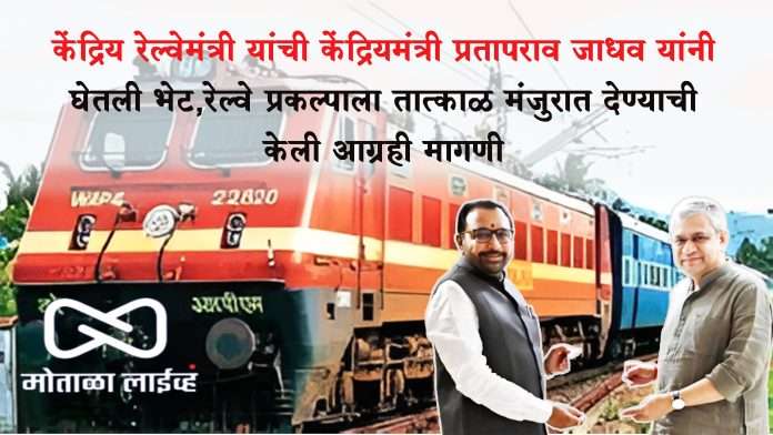 Motala live : इंग्रज काळापासुन बहुप्रतिक्षीत असलेल्या आणि राज्य सरकारने 50 % खर्चाला मंजुरात दिलेल्या खामगांव-जालना रेल्वे मार्गाच्या कामाला त्वरीत मंजुरात देऊन मान्यता प्रदान करावी. अशी आग्रही मागणी केंद्रिय रेल्वेमंत्री आश्विनी वैश्णव यांच्याकडे केंद्रिय मंत्री प्रतापराव जाधव यांनी प्रत्यक्ष भेट घेऊन केली आहे.