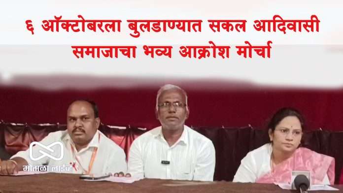[ मोताळा लाईव्ह ] बंजारा,धनगर समाज अनु.जमाती प्रवर्गातून आरक्षणाची मागणी करत असून याला आदिवासी समाजाने तीव्र विरोध केला असून या मागणीच्या विरोधात सोमवार 6 ऑक्टोबर २०२५ रोजी बुलढाणा जिल्हाधिकारी कार्यलयावर सकल आदिवासी समाज बांधवांच्या वतीने भव्य मोर्चा धडकणार आहे,अशी माहिती पत्रकार भवन येथे आयोजित पत्रकार परिषदेत देण्यात आली आहे.