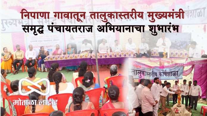 [ मोताळा लाईव्ह ] दिनांक 17 सप्टेंबर 2025 रोजी ग्रामपंचायत कार्यालय निपाणा येथे ग्रामविकास व पंचायत राज विभाग अंतर्गत मुख्यमंत्री समृद्ध पंचायतराज अभियानाचा तालुकास्तरीय शुभारंभ खूप मोठ्या उत्साहात करण्यात आला, कार्यक्रमाचे उद्घाटन मृत्युंजय गायकवाड यांच्या हस्ते दीप प्रज्वलन करून करण्यात आले. तसेच कार्यक्रमाच्या अध्यक्षस्थानी उपस्थित असलेले मोताळा पंचायत समितीचे गटविकास अधिकारी भारसाकडे तसेच कार्यक्रमा करिता प्रामुख्याने उपस्थित असलेले गटशिक्षणाधिकारी, सहाय्यक गट विकास अधिकारी, तालुका आरोग्य अधिकारी, तालुका कृषी अधिकारी, नाही तहसीलदार महसूल, मोताळा पंचायत समितीचे शाखा अभियंता, व निपाणा येथील सरपंच सौ शारदा संतोष यांच्या हस्ते जल पूजन करून गावांमध्ये, जलदिंडी काढण्यात आली. जलदिंडीमध्ये गावातील सर्व महिला बचत गट, महिला वर्ग, भजनी मंडळ, शालेय विद्यार्थी, शेतकरी, माजी सैनिक, शहीद वीर माता, वीर पत्नी इत्यादी उपस्थित होते. कार्यक्रमाचे सूत्रसंचालन सूत्रसंचालन ग्रामपंचायतचे ग्रामपंचायत अधिकारी श्री सुरडकर साहेब यांनी केले. कार्यक्रमाचे प्रास्ताविक निपाणी ग्रामपंचायतीचे सरपंच यांनी केले, माननीय गट विकास अधिकारी पंचायत समिती मोताळा यांनी संपूर्ण कार्यक्रमाची रूपरेषा तसेच योजनेची व्याख्या उपस्थित त्यांना समजावून सांगितली तसेच यामध्ये संपूर्ण गावाने उत्स्फूर्तपणे सहभाग नोंदवावा असे आवाहन केले. महाराजा स्व अभियानांतर्गत समाधान शिबिरा करता उपस्थित असलेल्या विविध विभागाच्या सर्व अधिकारी यांनी सदर योजनेमध्ये सर्व प्रकारचे सहकारी उपलब्ध करून देण्याबाबतची ग्वाही दिली. प्राथमिक आरोग्य केंद्र पिंपळगाव देवी यांच्यामार्फत भव्य आरोग्य शिबिराचे आयोजन करण्यात आलेले होते आरोग्य शिबिराचा लाभ बहुसंख्या नागरिकांनी घेतला. कार्यक्रमाकरिता महसूल विभाग, संजय गांधी विभाग, पुरवठा विभाग, आरोग्य विभाग, कृषी विभाग, आयुषमान भारत, विदर्भ कोकण ग्रामीण बँक आधी विभागांचे प्रतिनिधी सेवा देण्याकरिता हजर होते. आरोग्यमित्र तथा सामाजिक कार्यकर्ते श्री. संतोष तांदूळकर यांनी आभार व्यक्त करून कार्यक्रमाची सांगता केली.