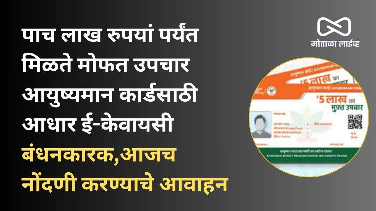 पात्र लाभार्थी यांनी आशासेविका, स्वस्त धान्य दुकानदार, नागरी सुविधा केंद्र (CSC), आरोग्य कर्मचारी, आरोग्य मित्र आणि प्राथमिक आरोग्य केंद्र व आरोग्य उपकेंद्र, शासकीय, निम शासकीय, तसेच खाजगी रुग्णालयांत फक्त आधार ई-केवायसी करावी लागणार आहे. आयुष्यमान भारत योजनेअंर्तगत आधार ई-केवायसी न केलेल्या पात्र लाभार्थ्यांनी लवकरात लवकर ई-केवायसी करुन घ्यावी.