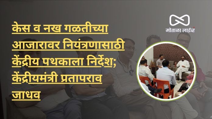 [मोताळा लाईव्ह] जिल्ह्यातील काही गावांमध्ये केस गळतीचे आणि त्यानंतर नख गळतीचे प्रकार वाढत असल्याच्या पार्श्वभूमीवर केंद्रीय आयुष आरोग्य व कुटुंब कल्याण राज्यमंत्री प्रतापराव जाधव यांनी आज केंद्र सरकारच्या पथकाला या आजाराच्या मुळाशी जाऊन कार्य करण्याचे निर्देश दिले.