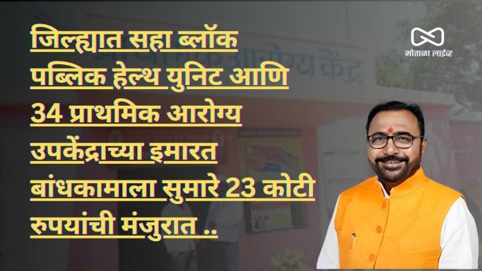 [मोताळा लाईव्ह] केंद्रीय आयुष आरोग्य व कुटुंब कल्याण राज्यमंत्री प्रतापराव जाधव यांच्या पाठपुराव्यातून बुलढाणा जिल्ह्यात 6 ब्लॉक पब्लिक हेल्थ युनिट आणि 34 प्राथमिक आरोग्य उपकेंद्र बांधकामासाठी सुमारे 23 कोटी रुपयांच्या निधीला मंजुरात मिळाली असून या संदर्भातील आदेश बुलढाणा जिल्हा परिषदेच्या आरोग्य विभागाला पाठवण्यात आले आहे बुलढाणा जिल्ह्यातील नागरिकांना चांगली आरोग्य सुविधा मिळावी या दृष्टिकोनातून नव्याने जिल्ह्यात सहा ब्लॉक पब्लिक हेल्थ युनिट आणि 34 प्राथमिक आरोग्य उपकेंद्रांतर्गत इमारतीचे बांधकाम करण्यात येणार आहे या संदर्भातील प्रस्ताव बुलढाणा जिल्हा परिषदेच्या आरोग्य विभागाच्या वतीने पाठवण्यात आला होता या प्रस्तावाचा पाठपुरावा केंद्रीय आयुष आरोग्य व कुटुंब कल्याण राज्यमंत्री प्रतापराव जाधव यांनी केला होता त्यानुसार 15 व्या वित्त आयोगातून बुलढाणा जिल्ह्यात सहा ब्लॉक पब्लिक हेल्थ युनिट बांधण्यासाठी प्रत्येकी 50 लक्ष रुपयांचा निधी असा एकूण तीन कोटी रुपयांचा निधी मंजूर करण्यात आला आहे हे ब्लॉक पब्लिक हेल्थ युनिट लोणार सिदखेडराजा देऊळगाव राजा मोताळा संग्रामपूर शेगाव येथे बांधण्यात येणार आहे तर जिल्ह्यातील 34 प्राथमिक आरोग्य उपकेंद्रासाठी प्रत्येकी 58.275 लाख रुपये असा एकूण 1981 .35 कोटी रुपयाचा निधी मंजूर करण्यात आला आहे यामध्ये खामगाव तालुक्यातील नांद्री , बोरजवळा ,पारखेड ,चिखली तालुक्यातील इसोली ,गांगलगाव ,सवना करवंड , डोंगर शेवली , पळसखेड दौलत जळगाव जामोद तालुक्यातील पळशी सुपो मलकापूर तालुक्यातील देवधाबा हरणखेड म्हैसवाडी दाताळा मेहकर तालुक्यातील दुधा ,मोडा , वरवंड ,चायगाव ,नांदुरा तालुक्यातील आलमपूर संग्रामपूर तालुक्यातील खिरोडा मनसगाव बुलढाणा तालुक्यातील सातगाव म्हसला मढ सिदखेडराजा तालुक्यातील पांगरी उगले लोणार तालुक्यातील किनगाव जट्टू बुमराळा गुंजखेड वडगाव तेजन येथील प्राथमिक आरोग्य उपकेंद्रात इमारत बांधकामासाठी हा निधी मंजुर झाला आहे या संदर्भाचे पत्र राष्ट्रीय आरोग्य अभियानाचे वतीने बुलढाणा जिल्हा परिषदेच्या आरोग्य विभागाला पाठविण्यात आले आहे बांधकामाची कारवाई करून सुरू करावेत असे नमूद केले आहे त्यामुळे आगामी काळात या प्राथमिक आरोग्य उपकेंद्रामध्ये इमारत बांधकाम होणार आहे ..
