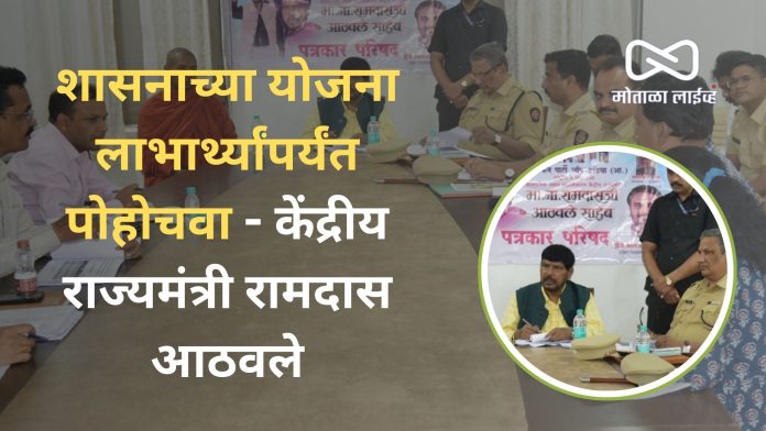 [मोताळा लाईव्ह] केंद्र व राज्य शासनाव्दारे राबविण्यात येणाऱ्या विविध योजना लाभार्थ्यांपर्यंत पोहोचवा. गरजूवंत लाभार्थी योजनाचा लाभापासून वंचित राहणार नाही, याची दक्षता संबधितानी घ्यावी, असे प्रतिपादन केंद्रीय सामाजिक न्याय व सक्षमीकरण राज्यमंत्री रामदास आठवले यांनी केले.