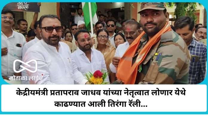 [मोताळा लाईव्ह] जम्मू कश्मीर येथील पहेलगाम येथे पर्यटकांवर दहशतवाद्यांनी केलेल्या हल्ल्यात 28 भारतीय नागरिक ठार झाले या हल्ल्याचा बदला घेण्यासाठी, ऑपरेशन सिंदूरद्वारे माध्यमातून पाकिस्तानमधील दहशतवाद्याचे तळ भारतीय सैन्याने उध्वस्त केले त्यानंतर पाकिस्तानने केलेल्या हल्ल्यालाही भारतीय जवानांनी चोख प्रतिउत्तर दिले भारतीय सैन्याच्या शौर्याला आणि पराक्रमाला सलाम करण्यासाठी बुलढाणा जिल्ह्यातील लोणार येथे केंद्रीयमंत्री प्रतापराव जाधव यांच्या उपस्थितीत शिवसेनेच्या वतीने आज 23 मे रोजी तिरंगा रॅलीचे आयोजन करण्यात आले होते लोणार येथील कृषी उत्पन्न बाजार समितीतून भारत मातेच्या प्रतिमेचे पूजन केंद्रीयमंत्री प्रतापराव जाधव यांच्या हस्ते झाले यावेळी माजी आमदार संजय रायमुलकर उपस्थित होते त्यानंतर या तिरंगा रॅली सुरुवात झाली लोणार शहरातील विविध मार्गाने भ्रमण करत रॅलीचा पुन्हा कृषी उत्पन्न बाजार समितीत झाला या रॅलीत सहभागी झालेल्या नागरिकांनी भारत माता की जय …वंदे मातरमच्या घोष दिल्यात त्यानंतर केंद्रीयमंत्री प्रतापराव जाधव यांच्या हस्ते माजी सैनिकांचा शाल श्रीफळ पुष्पगुच्छ देऊन सत्कार करण्यात आला या तिरंगा रॅलीमध्ये
