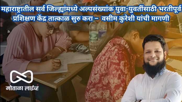 महाराष्ट्रातील सर्व जिल्ह्यांमध्ये अल्पसंख्यांक युवा-युवतींसाठी भरतीपूर्व प्रशिक्षण केंद्र तात्काळ सुरु करा – वसीम कुरेशी यांची मागणी