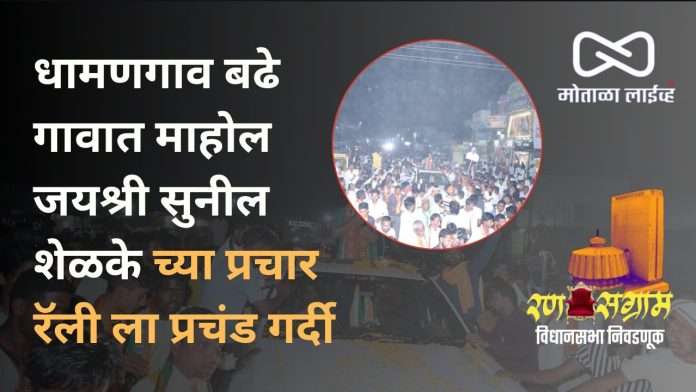 (मोताळा लाईव्ह )बुलढाणा विधानसभा मतदारसंघातील असलेल्या महाविकास आघाडीच्या उमेदवार जयश्री सुनील शेळके यांना मतदारसंघांमध्ये प्रचंड प्रतिसाद मिळत असून काल मोताळा तालुक्यात असलेल्या धामणगाव बढे मध्ये याची प्रचार रॅली काढण्यात आली होती या प्रचाराला नागरिकांना उत्स्फूर्त प्रतिसाद दिला असून या प्रचार रॅली मध्ये मोठ्या प्रमाणात नागरिकांनी सहभागी झाले होते ,त्यामुळे धामणगाव मध्ये संपूर्ण माहोल तयार झाला होता एवढेच काय तर महाविकास आघाडीचे असलेल्या उमेदवार जयश्री सुनील शेळके ह्या जनतेच्या मनातील उमेदवार असेही भावना या ठिकाणी नागरिकांना व्यक्त केले असून त्यामुळे महाविकास आघाडीचे असलेल्या उमेदवार जयश्री सुनील शेळके यांना आता गावागावात प्रचंड प्रतिसाद मिळत असून नागरिकांच्या मनातील उमेदवार असल्याचेही भावना व्यक्त करत आहे
