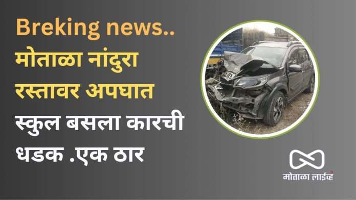 मोताळा नांदुरा रस्तावर अपघात स्कुल बसला कारची धडक .एक ठार