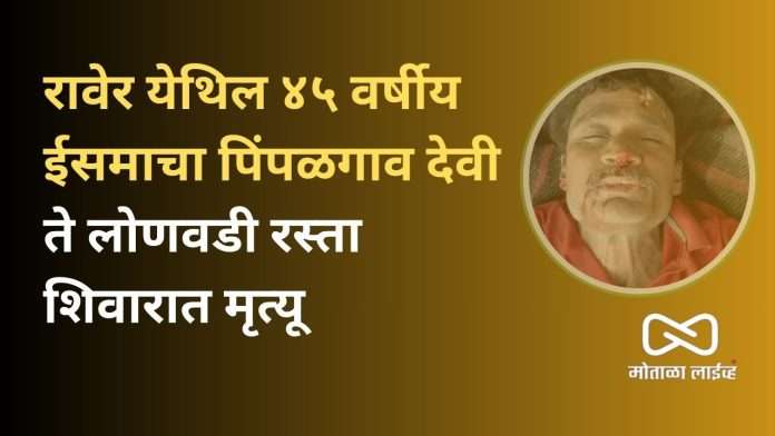 रावेर येथिल ४५ वर्षीय ईसमाचा पिंपळगाव देवी ते लोणवडी रस्ता शिवारात मृत्यू