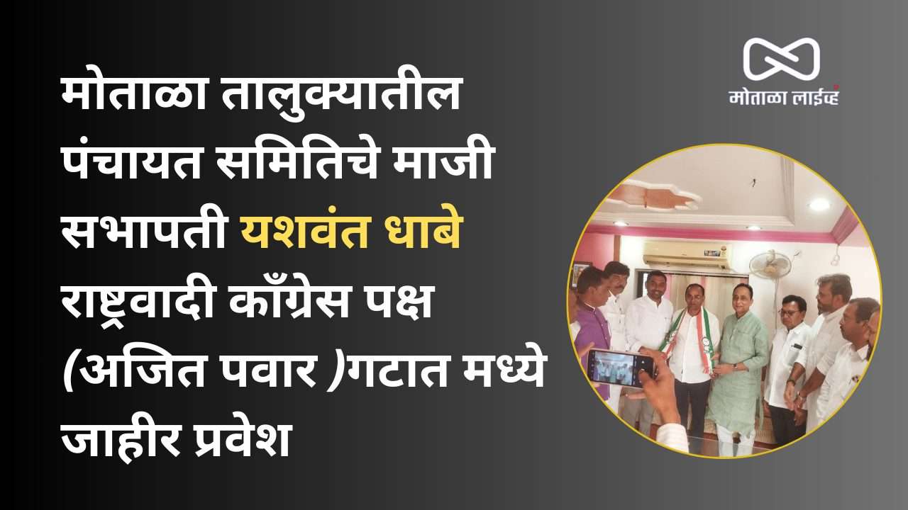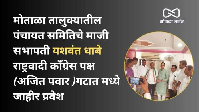 [मोताळा लाईव्ह ] मोताळा तालुक्यातील पंचायत समितिचे माजी सभापती तथा समाजसेवक यशवंत धाबे यांनी शिवसेना पक्षाला सोडचिठी दिली असून त्यांनी आज दिनांक २१/०२/२०२५ रोजी त्यांनी राष्ट्रवादी काँग्रेस पक्ष (अजित पवार )गटात मध्ये जाहीर प्रवेश त्यावेळी राष्ट्रवादी काँग्रेस पार्टीचे जिल्हा अध्यक्ष ॲड. नाझेर काझी साहेब व लोकप्रिय सिंदखेड राजा चे आमदार मनोज भाऊ कायंदे यांच्या सह . प्रदेश उपाध्यक्ष श्री तुकाराम अंभोरे पाटील व. श्री गिरधरराव पाटील प्रदेश सरचिटणीस व इरफान आली प्रदेश सरचिटणीस व कार्याध्यक्ष जिल्हा शंतून्यू बोंद्रे व जिल्हा अध्यक्ष अल्पसंख्य सेल मोबिन अहमद व मनीष बोरकर युवा जिल्हा अध्यक्ष. मनोज भाऊ दांडगे जी. उपाध्यक्ष . तालुका अध्यक्ष रामेश्वर पाटील मोताळा व तसेच शेकडो कार्यकर्ते सह यशवंतराव धाबे साहेब माजी सभापती मोताळा यांचा प्रवेश यांच्या यांच्या निवास्थानी शेकडो. कार्यकर्ता सह राष्ट्रवादी काँग्रेस पक्ष प्रवेश घेण्यात आला….