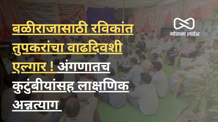 [मोताळा लाईव्ह] राजकीय नेते, पदाधिकाऱ्यांसाठी वाढदिवस म्हणजे जल्लोषाची मोठी पर्वणीच असते. बडेजाव आणि थाटमाट काही औरच असतो. मात्र, शेतकरी नेते रविकांत तुपकर त्याला अपवाद ठरले आहेत. वाढदिवशी कुठलाही आनंदोत्सव साजरा न करता शेतकऱ्यांच्या प्रश्नावर आपल्या घराच्या अंगणातच तुपकर यांनी पत्नी, आई, वडील, मुले आणि बहिणींसह १३ मे रोजी जन्मदिनी लाक्षणिक अन्नत्याग आंदोलन केले. जगाच्या पोशिंद्यासाठी केलेला हा एल्गार अधिक तीव्र करण्यासाठी शेतकरीदेखील मोठ्या संख्येने आंदोलनस्थळी दाखल झाले. राज्याच्या कानाकोपऱ्यातूनही कास्तकार आल्याने या आंदोलनाला मोठी ताकद मिळाली. या आंदोलनाच्या माध्यमातून तुपकर कुटुंबीयांनी शेतकऱ्यांप्रती कृतज्ञता व्यक्त केली.