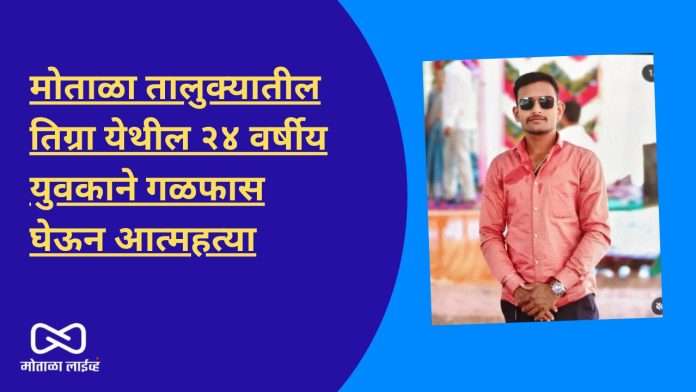 [मोताळा लाईव्ह] मोताळा तालुक्यातील तिग्रा येथील एका २४ वर्षीय युवकाने गळफास घेऊन आत्महत्या केल्याची घटना