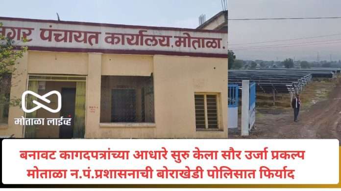 [मोताळा लाईव्ह] मोताळा नगरपंचायत हद्दीत काही महिन्यापासून मोताळा ते नांदुरा रोड वरती असलेल्या पावर स्टेशन जवळ सौर ऊर्जा प्रकल्प सुरू असून या प्रकल्प सुरू करण्यासाठी मोताळा नगरपंचायत यांची परवानगी घेणे आवश्यक होते.. मात्र या सौर ऊर्जा कंपनीने मोताळा नगरपंचायत ची ना हरकत घेतलेली आहे मात्र ती सुद्धा बनावट मोताळा नगरपंचायत च्या प्रशासनाच्या लक्षात ही बाब आली की संबंधित सौर ऊर्जा प्रकल्प यांनी आपल्याकडून कुठल्याही प्रकारची एनओसी घेतली नाही त्यासाठी मोताळा नगरपंचायत प्रशासनाने या सौरऊर्जा प्रकल्प कंपनीला आपण मोताळा नगरपंचायत ची परवानगी घेतली आहे का याबाबत पत्रव्यवहार केला असता संबंधित कंपनीने मोताळा नगरपंचायत चे मुख्य अधिकारी यांच्या बनावट स्वाक्षरीचे परवानगी असल्याचे पत्र मोताळा नगरपंचायत प्रश्न दिले त्यामुळे एकच खळबळ उडाली याबाबत मोताळा नगरपंचायतचे मुख्य अधिकारी गणेश पांडे यांनी याबाबत बोराखेळी पोलीस स्टेशनला मोताळा नगरपंचायत प्रशासनात असलेला लिपिक याला प्राधिकुत करून बोराखडी पोलीस स्टेशनला तक्रार देण्यात सांगितले त्यावरून आता बोरखडी पोलीस स्टेशन ही या सर्व प्रकरणावरती चौकशी करत असून मात्र बोराखेडी पोलिसांनी अद्यापही या प्रकरणात गुन्हा दाखल केला नाही त्यामुळे मोताळा नगरपंचायत ही गेल्या काही दिवसांपासून चर्चेत आली असून मोताळा नगरपंचायत मध्ये नेमकं काय सुरू आहे हा सर्व सर्व मोताळावासीय नागरिकांना पडला आहे तर दुसरीकडे या प्रकल्पाला ही जी कोणी परवानगी दिली ती कोणी दिली व का दिली तशा प्रकारचा ठराव घेतला आहे का अशा अनेक बाबी उघड होणे गरजेचे आहे जर कोणी मोताळा नगरपंचायत चा कर बुडवण्याचा प्रयत्न करत असेल तर त्यावरती गुन्हा दाखल व्हायला पाहिजे अशी सर्वसामान्य नागरिकांच्या भावना असून याबाबत मुख्य अधिकारी गणेश पांडे यांनी सांगितले आहे