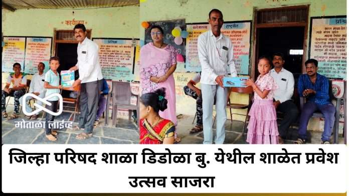 [मोताळा लाईव्ह ] जि.प.म.प्रा.शाळा डिडाका बू येथे नवीन शैक्षणिक वर्षाची सुरुवात या निमीत्ताने नानावीद्य,आनंददायी शैक्षणिक उपक्रम आयोजीत करण्यात आले होत शाळेचा पहिला दिवस असल्याने नवोदित विदयार्थ्यांचा प्रवेश उत्सव साजरा करण्यात आला यामध्ये नवीन प्रवेश घेतलेल्या विद्याथी यांच्या स्वागतासाठी रांगोळी व फुले व रंगीबेरंगी फुगे यांच्या सहाय्याने परिसर सुशोभित करण्यात आला होता. नवीन विदयार्थ्यांना मान्यवरांच्या हस्ते गुलाबपुष्प, चॉकलेट देऊन स्वागत करण्यात आले तसेच नवीन व त्याचबरोबर नियमित विद्यार्थ्यांना नवीन गणवेश, नवीन पुस्तकें व बूट सॉक्स वाटप करण्यात आले.पहिल्या दिवसाची सुरुवात आनंदाने व्हावी त्यासाठी आज मध्यान्ह भोजनासोबतच मिठाईचा बेतही ठरविण्यात आला होता. सर्व विद्यार्थी मित्रांनी त्याचा आनंद घेतला.याप्रसंगी शाळा व्यवस्थापन समितीच्या अध्यक्षा सौ. रुपालीताई निलेश समनेरे उपाध्यक्ष श्री अनिलभाऊ किरोचे, पालक सदस्य मा श्री शिवाजीभाऊ मिरगे, तसेच इतर पालक को, गावातील प्रतिष्ठित नागरिक अंगणवाडी सेविका व शाळेच्या मुख्याध्यापिका या सर्वांनी या कार्यक्रमाची शोभा वाढविली.