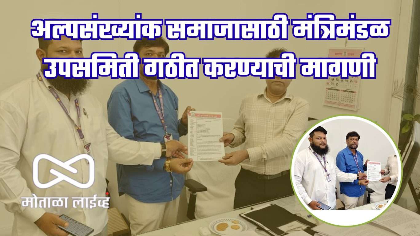 [मोताळा लाईव्ह] अल्पसंख्यांक समाजाच्या सामाजिक, शैक्षणिक आणि आर्थिक प्रगतीसाठी ठोस धोरणे आखण्यासाठी आणि योजनांच्या परिणामकारक अंमलबजावणीसाठी मंत्रिमंडळ उपसमिती गठीत करण्याची मागणी मार्टि कृती समिती महाराष्ट्र तर्फे करण्यात आली.यासंदर्भात मंत्रालयात मा. सचिव रुचेश जयवंशी यांची भेट घेऊन सरचिटणीस अँड . शेख वासिम,रियाज सौदागर अल्पसंख्यांक सोसायटी असोसिएशन सदस्य चर्चा करून निवेदन सादर करण्यात आले. अध्यक्ष अँड . अझर पठाण, सचिव अँडशबाझ पठाण, सहसचिव नबील उल जमा, उपाध्यक्ष सईद असिफ यांची सही असलेल्या या निवेदनात समाजातील मागासलेपण दूर करण्यासाठी ठोस पावले उचलण्याची मागणी करण्यात आली.